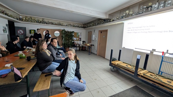 Die Feier war nicht nur zum Schlemmen da, sondern auch für den wichtigen Austausch untereinander. Ein besonderes Highlight war der Vortrag von Annabel: Mit einer packenden Präsentation hat sie uns auf das Ju-Jutsu Sportcamp in Inzell eingestimmt.